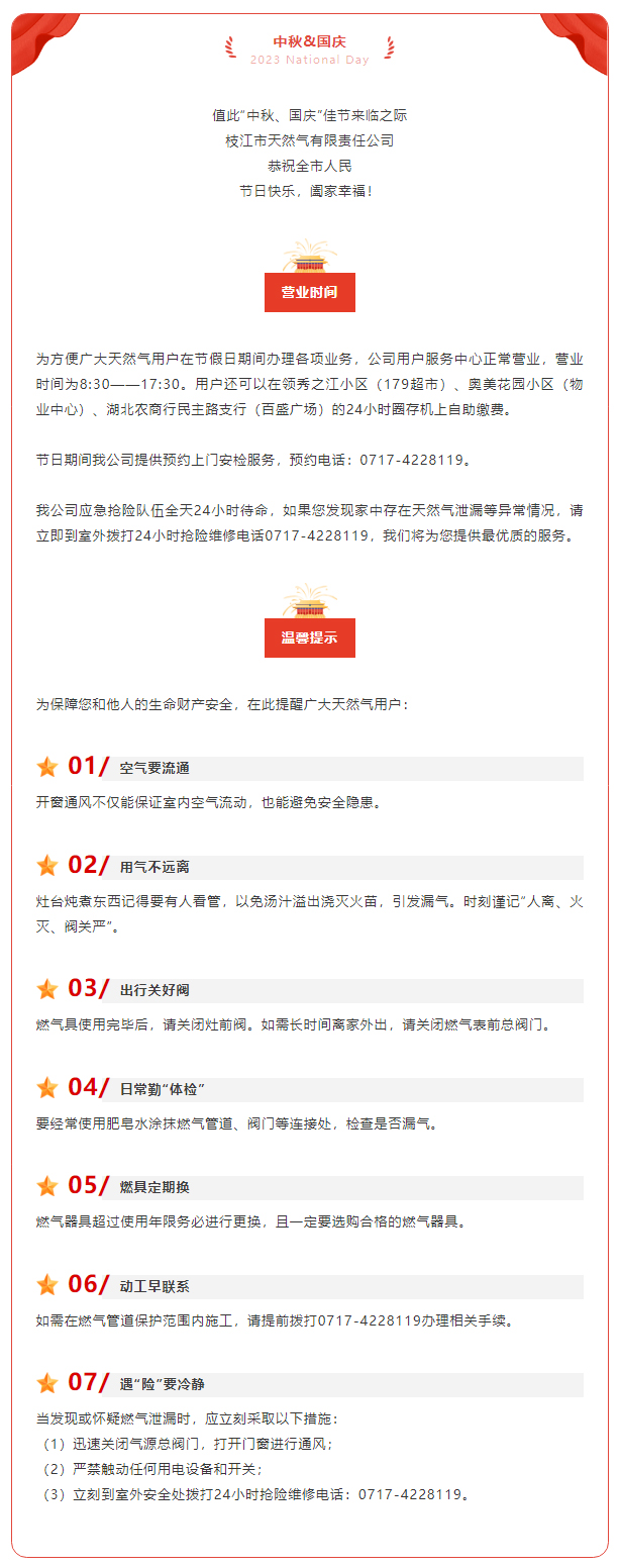 枝江市天然氣公司恭祝全市人民“中秋、國慶”雙節(jié)快樂!