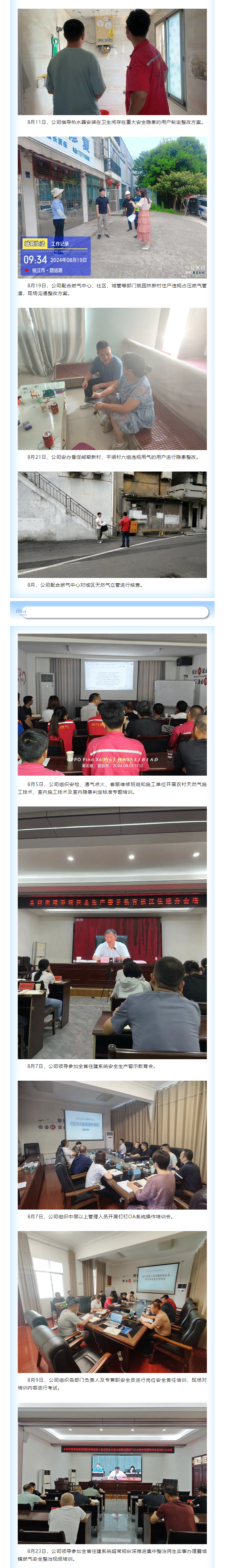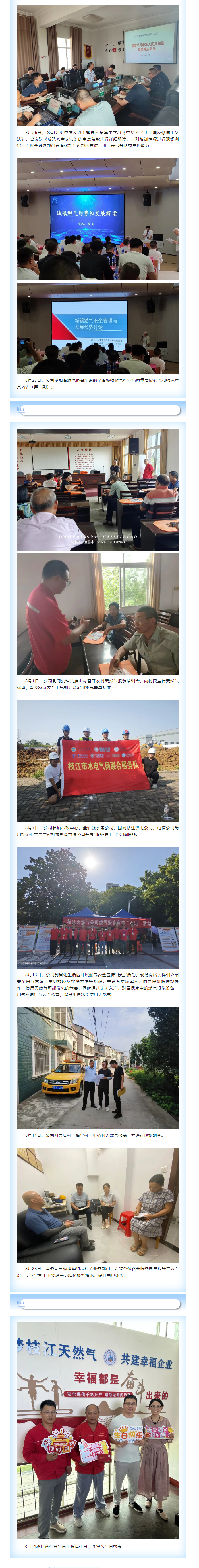 枝江市天然氣公司2024年8月工作動態(tài)