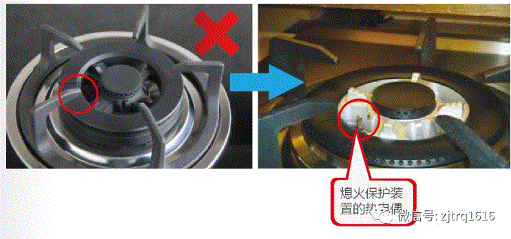 ⑤灶具無熄火保護(hù)裝置;整改建議:更換灶具。