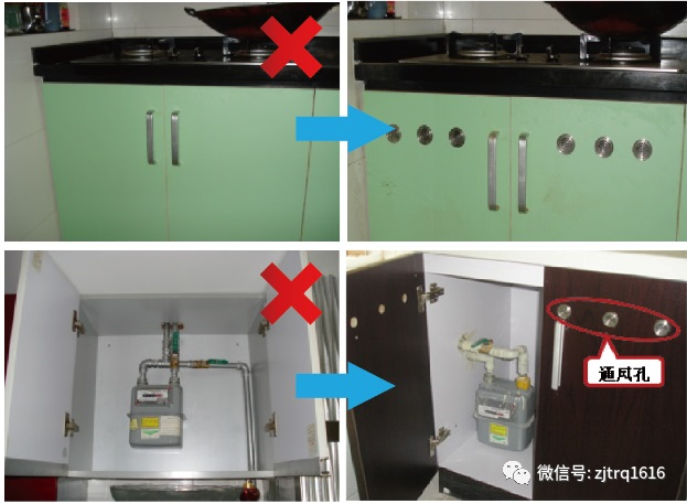 ①燃?xì)庠钕路綑还?、燃?xì)獗硗L(fēng)不良。整改建議:開通風(fēng)孔。