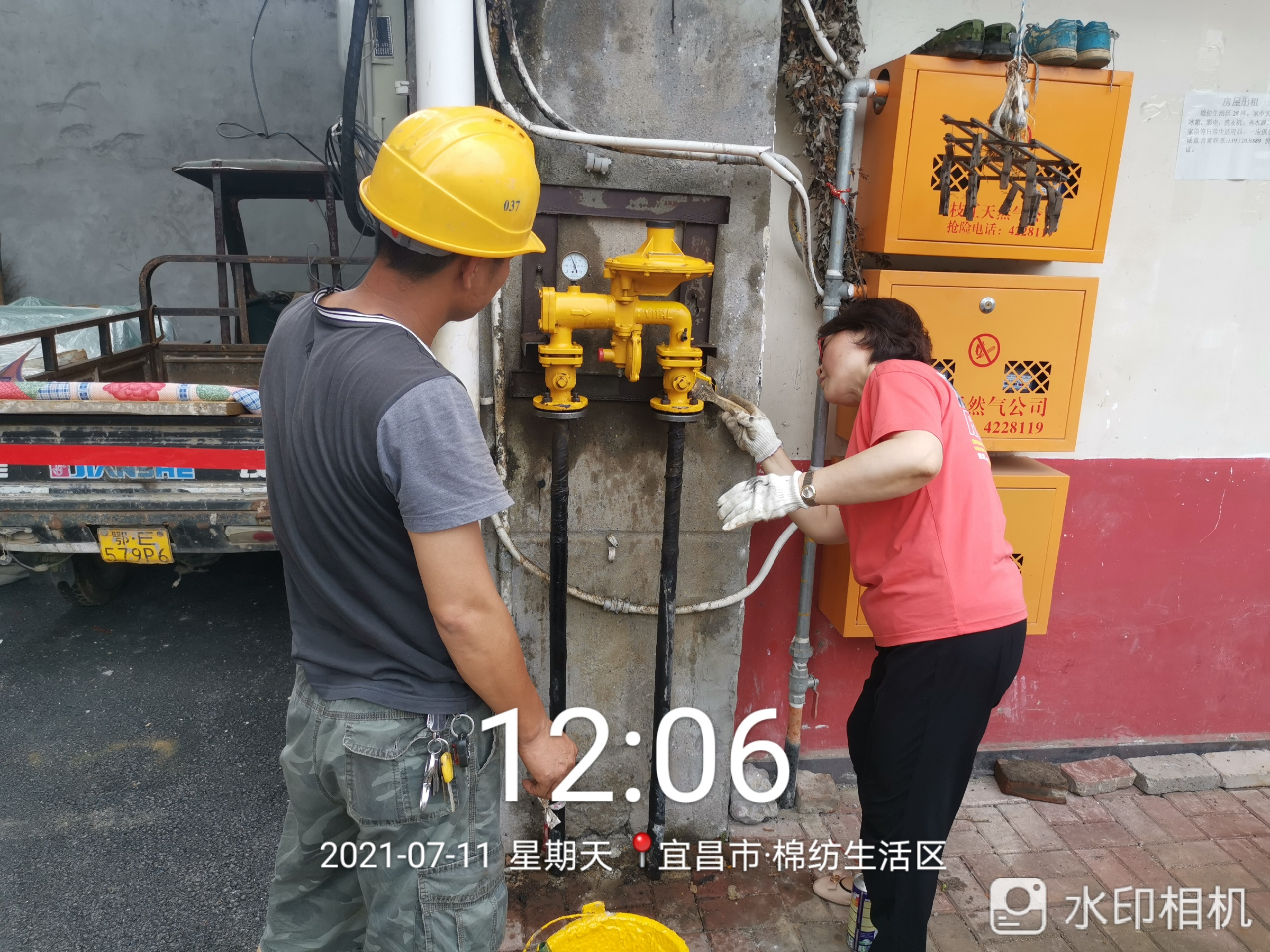 7月11日下午,公司總經(jīng)理踏勘老舊燃?xì)夤芫€及設(shè)施改造
