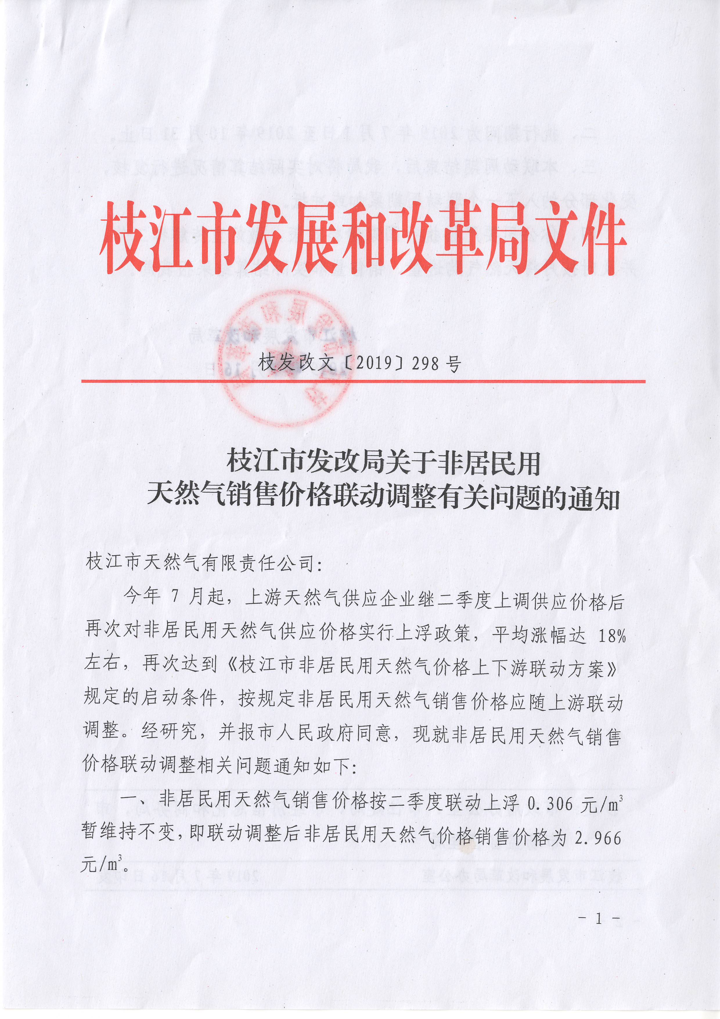 我市非居民用天然氣銷售價格聯(lián)動調(diào)整